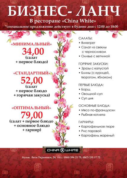 Бизнес-ланчи на любой вкус в ресторане China White!