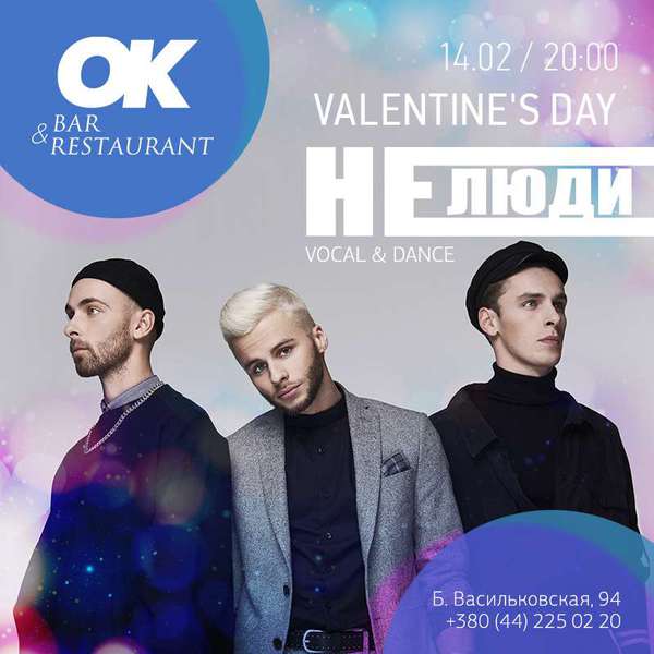14 февраля, 20:00, OK Bar & Restaurant открывает двери для любящих душ и горячих сердец. Большая Васильковская, 94, 0675064691