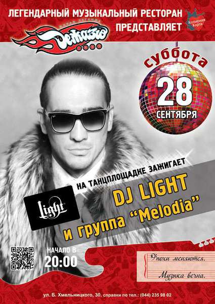 Король киевских вечеринок DJ Light и зубры танцплощадок ВИА МЕЛОДИЯ зажигают на контрасте на самой драйвовой дискотеке этой осени - ТАНЦПЛОЩАДКЕ Дежавю!