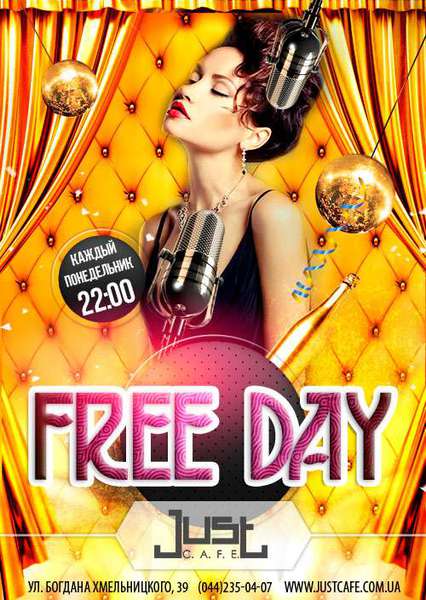 Если кто-то до сих пор не любит понедельники, он просто не знает о FREE DAY в JUST C.A.F.E.! Ведь именно в этот день мы дарим своим гостям свободный вход и целую ночь бесплатного караоке.