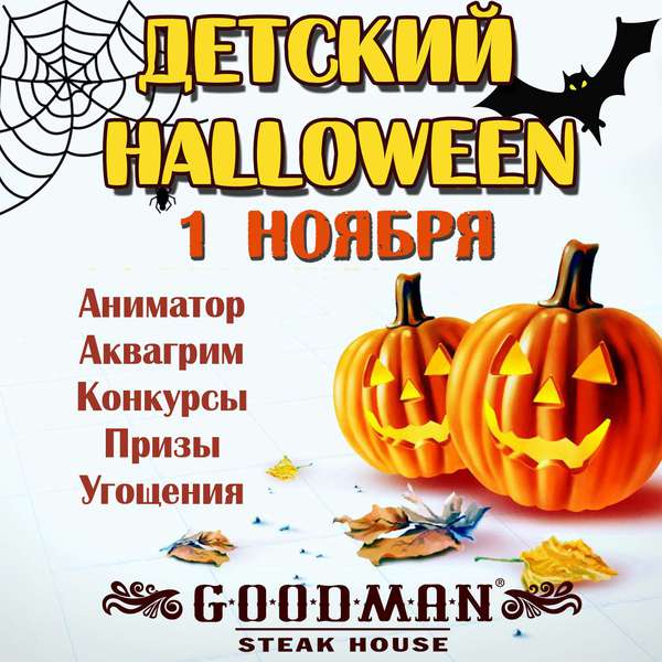 Сладости или жизнь! 1 ноября, придя в стейк-хаус GOODMAN, не надейтесь увидеть привычный интерьер. Когда на город опустится тьма, GOODMAN превратится в самый настоящий старинный заброшенный замок со всеми ужасающими атрибутами – паутиной, свечами, летучими мышами и, конечно же, вездесущими Светильниками Джека!