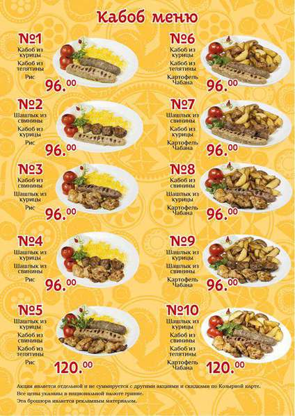 Предпочитаете кабоб из курицы, или из телятины? А, может сочный шашлык из свинины? Лучше все и сразу с рисом, или всеми любимым картофелем Чабана!