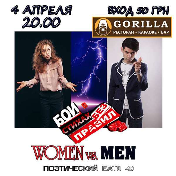 4 апреля в 20:00 ресторан-караоке-бар GORILLA приглашает Вас на четвертый поэтический батл.