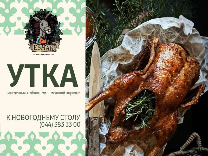 Новогодний подарок для наших гостей – закажите к праздничному столу ароматную Утку, запеченную с яблоками в медовой корочке от Шеф-повара ESHAK!