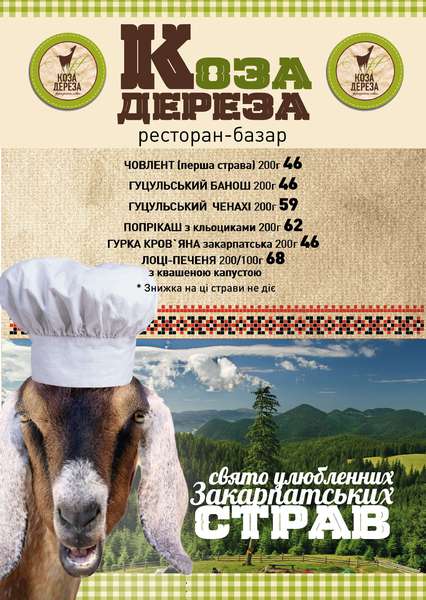 Наслаждайтесь традиционными блюдами живописного Закарпатья в ресторане-базаре «Коза Дереза»! Приятного аппетита!