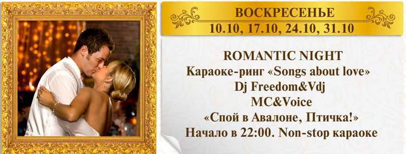 | 09.10.2010 | ROMANTIC NIGHT- Караоке-ринг Song about Love |