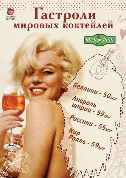 Не забывайте, что жизнью стоит наслаждаться во всех ее проявлениях. Поэтому ресторан Креп де Шин приглашает вас на гастроли мировых коктейлей! Мы предлагаем вам побаловать себя самым популярным коктейлем Италии – Беллини, который является одним из официальных коктейлей Международной ассоциации барменов, что свидетельствует о его популярности у публики и о его признании в профессиональном мире.