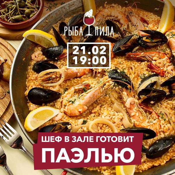 | 20.02.2020 | В пятницу, 21 февраля, Шеф готовит в зале Рыбы Пилы паэлью с морепродуктами на большой сковороде. Начинаем в 19:00 Резерв 068 8888 067 📍ул. Большая Васильковская, 112 |