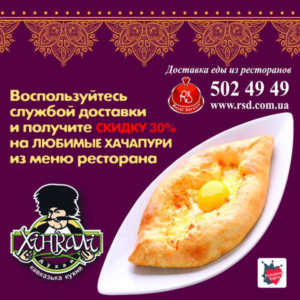 Скидка 30% на все хачапури через службу доставки Royal Service